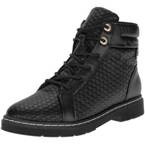 A Bota Feminina Coturno Modare é confeccionada em Napa Flex Comfy de alta qualidade com acabamento em costura, fechamento por cadarço de amarração, forro interno em têxtil, palmilha em PU e solado em borracha antiderrapante com salto de três centímetros e meio. Esse modelo possui cano de treze centímetros por trinta e três centímetros de circunferência.