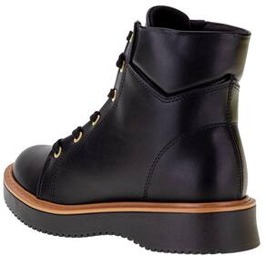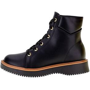 A Bota Feminina Coturno Moleca é confeccionada em Napa Floather com acabamento em costura, fechamento por cadarço de amarração, forro interno em têxtil, palmilha em PU e solado em borracha. O cano mede catorze centímetros de altura por trinta e dois de circunferência.