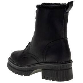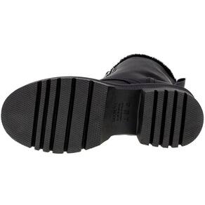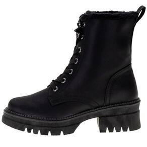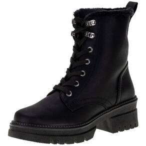 A Bota Feminina Coturno Mooncity é confeccionada em Napa com acabamento em costura, fechamento por cadarço de amarração, forro interno em Pelo, palmilha em PU/Pelo e solado em borracha tratorada. O cano mede dezessete centímetros por vinte nove de circunferência.