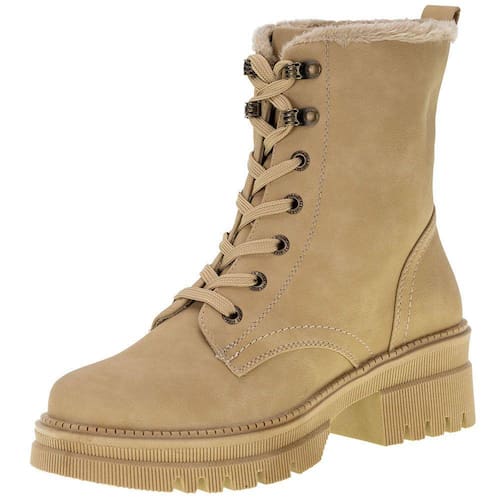 A Bota Feminina Coturno Mooncity é confeccionada em Napa com acabamento em costura, fechamento por cadarço de amarração, forro interno em Pelo, palmilha em PU/Pelo e solado em borracha tratorada. O cano mede dezessete centímetros por vinte nove de circunferência.