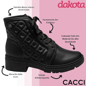 Versátil e cheia de estilo, a Bota Coturno Dakota combina com tudo: do jeans básico ao vestido mais delicado. É a escolha certa para quem quer arrasar com atitude e elegância em qualquer ocasião.