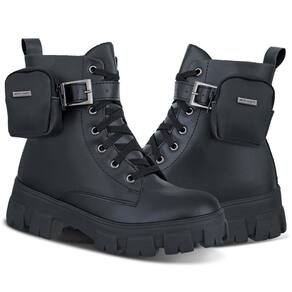 Bota Feminina Coturno Tratorada Cano Médio Cadarço Casual - 40 - Preto