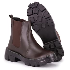 Bota Feminina Coturno 601 Tratorado Cano Medio Elastico - Marrom