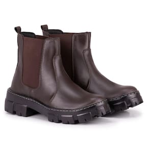 Bota Feminina Coturno 601 Tratorado Cano Medio Elastico - Marrom