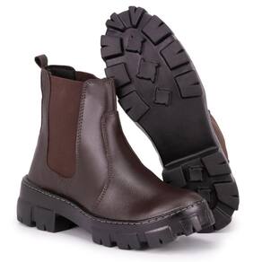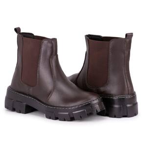 Bota Feminina Coturno 601 Tratorado Cano Medio Elastico - Marrom