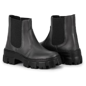 Bota Feminina Coturno 601 Tratorado Cano Medio Elastico - Preto