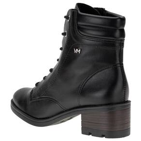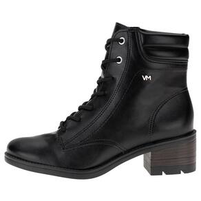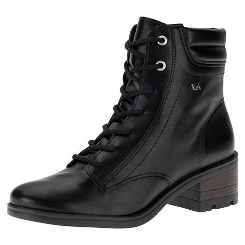 A Bota Feminina Coturno Via Marte é feita em Napa Aspen com acabamento em costura, fechamento por cadarço de amarração, forro interno em têxtil, palmilha em PU e solado em borracha antiderrapante. O cano mede catorze centímetros de altura por vinte e seis de circunferência.