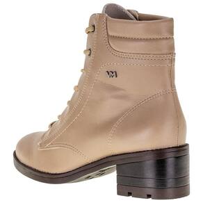 A Bota Feminina Coturno Via Marte é feita em Napa Aspen com acabamento em costura, fechamento por cadarço de amarração, forro interno em têxtil, palmilha em PU e solado em borracha antiderrapante. O cano mede catorze centímetros de altura por vinte e seis de circunferência.
