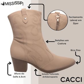 Prepare-se para conquistar olhares e exalar estilo com a nossa Bota Feminina Country Salto Médio Cano Baixo Mississipi. Este é o item essencial que faltava no seu guarda-roupa para adicionar um toque de elegância rústica ao seu visual.