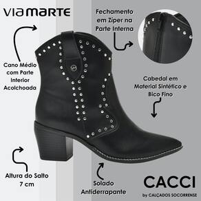Bota Texana Feminina Via Marte, confeccionada em material sintético com fechamento prático interno e tachinhas nos detalhes, essa bota é uma tendência que continua em alta na estação, podendo ser usada tanto durante a noite quanto durante o dia. Ideal para compor looks de arrasar!