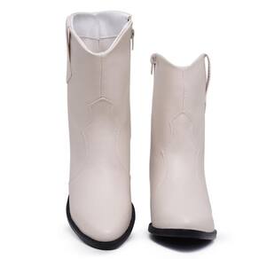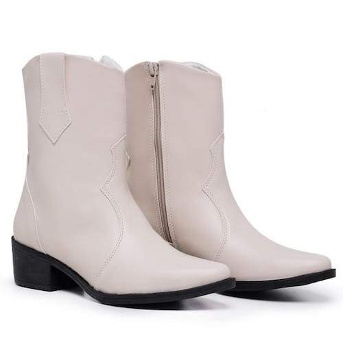 Bota Feminina Country Texana Zíper Cano Médio Confortável - 34 - Branco