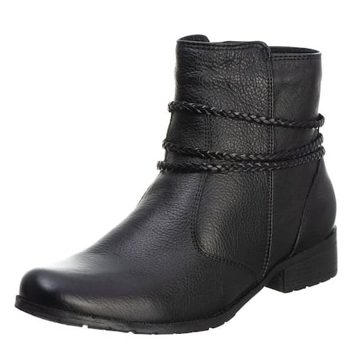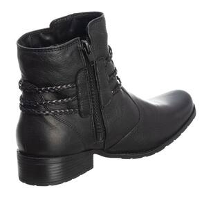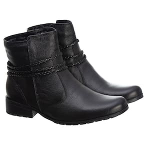 Bota Feminina Couro Cano Curto Lisa Detalhe Trançinhas Laterais Solado Borracha Macia - 38 - Preto