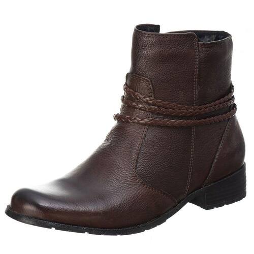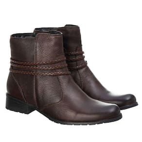 Bota Feminina Couro Cano Curto Lisa Detalhe Trançinhas Laterais Solado Borracha Macia - 37 - Marrom