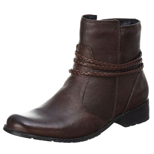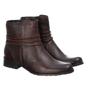 Bota Feminina Couro Cano Curto Lisa Detalhe Trançinhas Laterais Solado Borracha Macia - 40 - Marrom