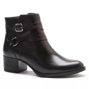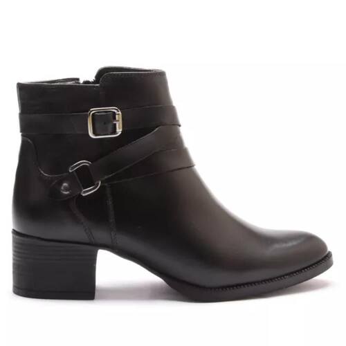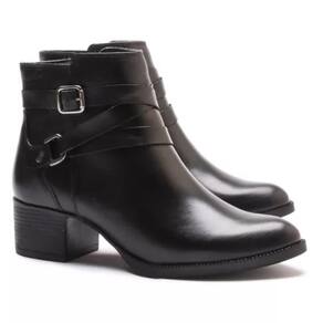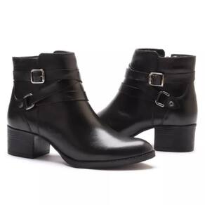 Bota Feminina Couro Cano Curto Salto Baixo Fivela Conforto - 40 - Preto