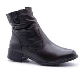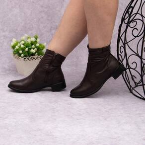 Bota Feminina Couro Cano Curto Zíper Lateral Casual Moderna - 34 - Marrom Chocolate