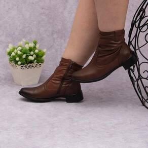 Bota Feminina Couro Cano Curto Zíper Lateral Casual Moderna - 34 - Marrom