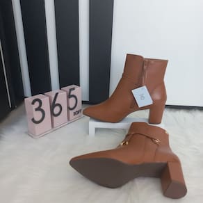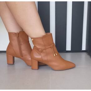 Bota Feminina Couro Caramelo Cano Curto Salto Grosso Confort - 33 - Marrom