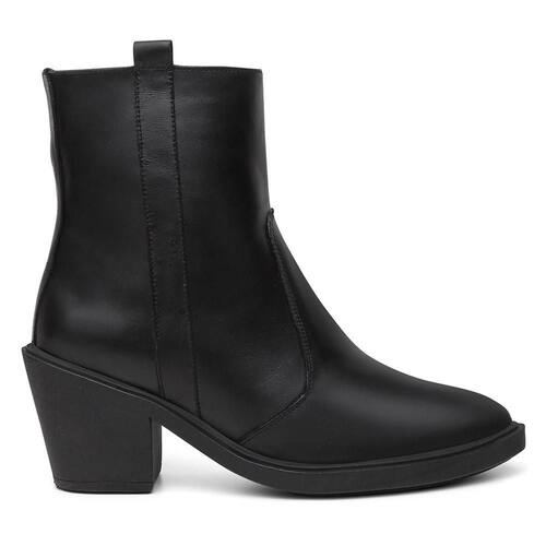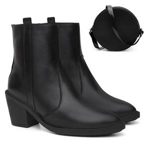 Bota Feminina Couro Casual Bico Fino Zíper + Bolsa Roma - 37 - Preto