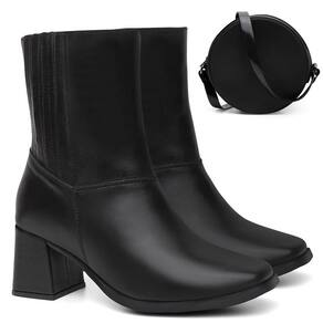 Modelo fashionista, esta bota da Valentina K + Bolsa Roma foi confeccionada para garantir durabilidade e proteção. O modelo confeccionado em couro e com material interno em tecido, permite maior conforto para produções do dia a dia. Com salto baixo, cano curto e fecho em zíper, inspira ousadia e atitude. Aposte na peça com calça jeans e camisa. Este modelo é pra quem busca conforto e estilo ao mesmo tempo! Bolsa confeccionada em PVC