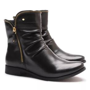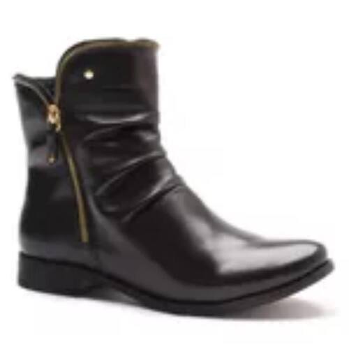 Bota Feminina Couro Casual Cano Curto Zíper Vegetale - 38 - Preto