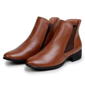A Bota Feminina 100% Couro, Elástico Reforçada Macia é perfeita para mulheres adultas que buscam estilo e conforto. Com um design moderno. é ideal para o outono/inverno de 2025. O modelo de cano curto e salto baixo proporciona um visual descolado e atual. Além disso. é versátil e fácil de combinar com diferentes looks. Invista nessa bota feminina para arrasar em qualquer ocasião. DESCRIÇÃO DO PRODUTO: Modelo: Bota Feminina Material: Couro. produto não impermeável Numeração: 33 ao 40 Solado: Borracha Palmilha: EVA 10mm. macia. confortável Cano: Cano Baixo Fechamento: Zíper e Elástico Medidas da Palmilha (Forma Normal): 33 ? 23.6 cm 34 ? 24.2 cm 35 ? 24.8 cm 36 ? 25.7 cm 37 ? 26.2 cm 38 ? 26.9 cm 39 ? 27.5 cm 40 ? 28.2 cm