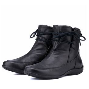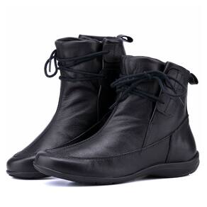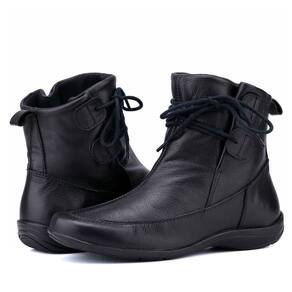 Bota Feminina Em Couro Preta Cano Curto Com Cadarços Fashion - 37 - Preto