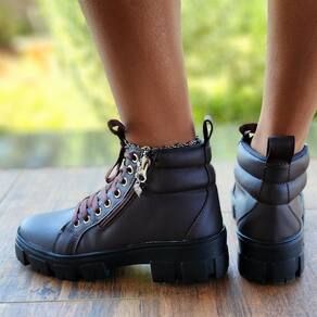 Bota Feminina com Solado tratorado Plataforma  Descubra o Charme do Conforto para seus treinos ou passeio com nosso coturno feminino   Características Principais: Cabedal: Sintético  Forro: Tecido Antibacteriano Palmilha: Confort Eva 4mm Sola: Borracha Antiderrapante Altura Da Sola: 5 Centrimetros  Metais: Antioxidante Ajuste: Cadarço Fios De Algodão E Zíper Reforçado Peso:  0.600g   Atenção na hora de escolher seu tamanho, o Tênis possui FORMA NORMAL, pedir o número que já está acostumado a usar, temos aqui a abaixo uma tabela aproximada de cm da palmilha para usarem como referência. TAMANHO DE PALMILHA 33 - 22.9 cm  34 - 23.2 cm  35 - 24.0 cm 36 - 24.5 cm 37 - 25.0 cm 38 - 26.0 cm 39 - 27.0 cm 40 - 27.5 cm   Não perca a chance de adicionar um toque de elegância e conforto ao seu guarda-roupa. Clique em "Comprar Agora" e experimente a combinação perfeita de estilo e comodidade com nossos Coturnos Femininos. Seu próximo par de sapatos favorito está a apenas um clique de distância!