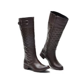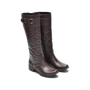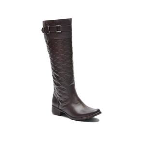 Bota Feminina Montaria Couro Matelassê Cano Alto Moderna - 35 - Marrom Cacau