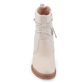 Bota Ramarim 23-60104 tem cabedal fabricado em material sintético liso com detalhe em costuras, seu cano é em crochet e tem como detalhe um cadarço decorativo ao redor. É um modelo confortável forrado internamente, seu fechamento é através de zíper na lateral interna facilitando o calçe. Sua palmilha interna é fixa, macia e revestida em material têxtil apresentando a logo da marca. O salto é alto e o solado levemente tratorado, possui aproximadamente 10cm de altura traseiro e 2cm de altura frontal, é confortável e traz segurança ao caminhar. Seu solado possui frisos para maior segurança.