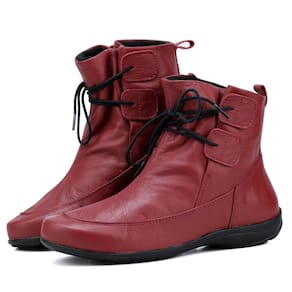 Bota Feminina Rasteira Em Couro Bordô Linha Premium Confort - 37 - Vinho