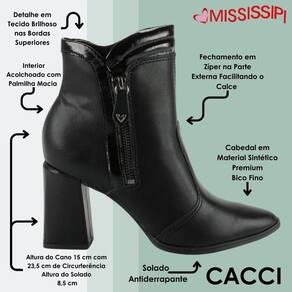 A Bota Mississipi é a escolha perfeita para quem busca um calçado estiloso e confortável para o dia a dia. Confeccionada em material sintético de alta qualidade, a bota garante durabilidade e resistência. O salto bloco de 8,5 cm oferece um toque de sofisticação e elegância, sem abrir mão do conforto. O fechamento prático na lateral facilita o calçar e descalçar, além de agregar um toque de estilo ao modelo.