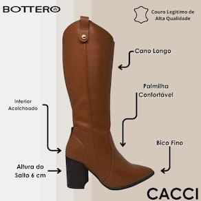 A Bota Bottero é a combinação ideal de elegância e praticidade para quem busca um visual moderno sem abrir mão do conforto. Seu design de salto médio proporciona altura na medida certa, garantindo estabilidade e bem-estar ao longo do dia, seja em compromissos casuais ou em produções mais elaboradas.