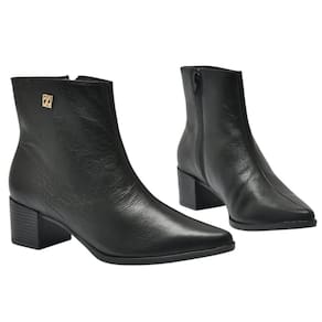 Confeccionada em couro autêntico, essa bota apresenta acabamento impecável e excelente durabilidade. O interior forrado envolve os pés com suavidade, proporcionando bem-estar desde o primeiro uso. O detalhe metálico na lateral valoriza ainda mais o design, trazendo um brilho sutil e elegante que eleva o look sem exageros.