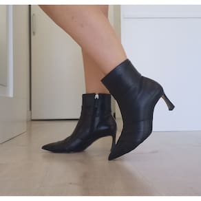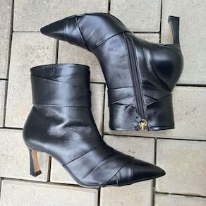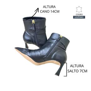 A Bota Feminina Dian Patris Bico Fino Salto Fino Médio Bege Claro confeccionado em Couro é uma peça clássica e atemporal. Possui tiras transpassadas que dão um charme a bota, com bico fino e salto fino tamanho médio de 7cm. Pela sua versatilidade, é peça obrigatório em todo guarda-roupa e acompanha muito bem cotidiano de trabalho ou aquele happy hour. Cor: Preto Fechamento: Zíper Marca: Dian Patris Material: Couro Salto: Fino Altura Salto: 7 cm Bico Fino Solado: antiderrapante MEDIDAS DA PALMILHA TAMANHO 33 22,6CM 34 23,2CM 35 24CM 36 24,5CM 37 25CM 38 25,8CM 39 26,2CM 40 27CM