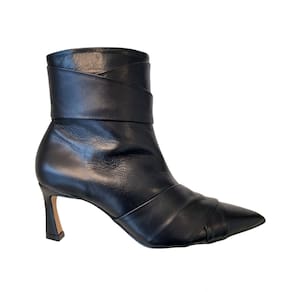 A Bota Feminina Dian Patris Bico Fino Salto Fino Médio Bege Claro confeccionado em Couro é uma peça clássica e atemporal. Possui tiras transpassadas que dão um charme a bota, com bico fino e salto fino tamanho médio de 7cm. Pela sua versatilidade, é peça obrigatório em todo guarda-roupa e acompanha muito bem cotidiano de trabalho ou aquele happy hour. Cor: Preto Fechamento: Zíper Marca: Dian Patris Material: Couro Salto: Fino Altura Salto: 7 cm Bico Fino Solado: antiderrapante MEDIDAS DA PALMILHA TAMANHO 33 22,6CM 34 23,2CM 35 24CM 36 24,5CM 37 25CM 38 25,8CM 39 26,2CM 40 27CM