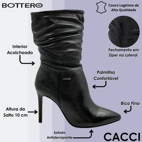 A bota perfeita para quem deseja unir elegância, ousadia e personalidade em um único calçado. Com um design marcante, essa peça valoriza o visual feminino com seu salto alto e fino de 10 cm, que alonga a silhueta e confere presença em qualquer ocasião. O cano curto com acabamento enrugado adiciona charme e movimento ao look, criando uma estética moderna e cheia de estilo. O bico fino reforça a sofisticação da proposta, enquanto o interior com forro têxtil proporciona aconchego e suavidade ao toque. Seu sistema de fechamento lateral, discreto e funcional, facilita o calce sem interferir na elegância do modelo. A assinatura metalizada da marca aplicada na lateral traz um toque de exclusividade. Ideal para mulheres que gostam de se destacar, essa bota combina com vestidos ajustados, saias de couro ou calças skinny, criando composições poderosas para eventos noturnos, encontros especiais ou até mesmo para dar um toque fashion a produções urbanas do dia a dia. Um calçado que traduz confiança e sofisticação em cada passo.