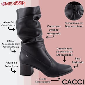A bota que faltava no seu guarda-roupa chegou para transformar suas produções com praticidade e elegância. Pensada para mulheres modernas que desejam um visual refinado sem abrir mão do conforto, essa bota da Mississipi é leve e confortável, ideal tanto para os compromissos do dia a dia quanto para momentos de lazer. Seu design slouch, com o cano médio levemente franzido, adiciona um charme extra e transmite autenticidade e estilo com naturalidade. A altura média do cano valoriza o contorno das pernas e cria uma silhueta elegante, perfeita para ser usada com vestidos fluidos, saias jeans, calças ajustadas ou até mesmo com shorts e meia-calça nos dias mais frescos. O salto bloco de altura mediana proporciona firmeza ao andar, ideal para quem busca equilíbrio entre estilo e praticidade. Feita com material sintético de alta durabilidade e toque agradável, essa bota oferece resistência ao uso contínuo e um visual sempre impecável. Uma escolha certeira para combinar com looks urbanos, ambientes casuais ou até mesmo para dar um toque fashion à rotina.