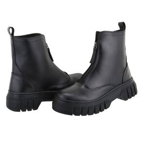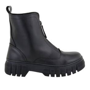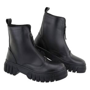Bota Feminina Tratorada Plataforma Inverno Sola Borracha Antiderrapante Fechamento Ziper - 37 - Preto
