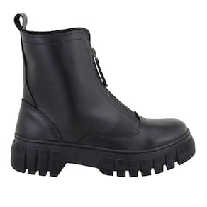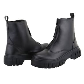 Bota Feminina Tratorada Plataforma Inverno Sola Borracha Antiderrapante Fechamento Ziper - 38 - Preto