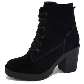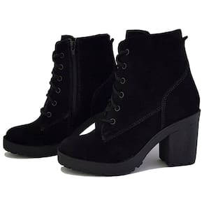 Bota feminina Tratorada Preta Plataforma Blogueira com relógio