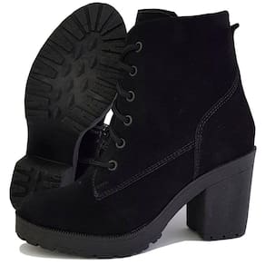 Bota feminina Tratorada Preta Plataforma Blogueira com relógio