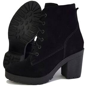 Bota feminina Tratorada Preta Plataforma Blogueira com relógio