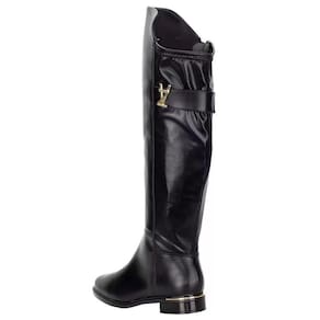 A Bota Feminina Cano Alto Vizzano é confeccionada em Napa Genebra com detalhe em tecido maleável,