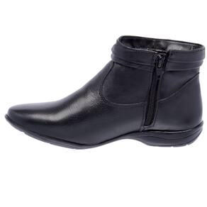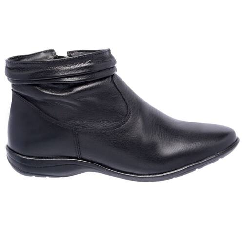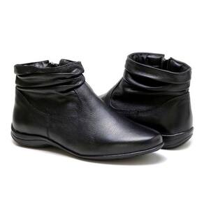 Bota Flat em Couro Feminino Rasteira Zíper Borda Camada Resistente Confortável - 35 - Preto