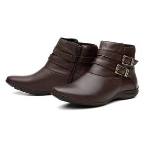 CARACTERÍSTICAS - Material Externo: Couro - Material Interno: Tecido espumado - Palmilha Interna: Macia, ideal para absorção de impacto - Solado: Borracha leve com alta aderência - Fechamento: Zíper lateral interno - Enfeite: Fivelas