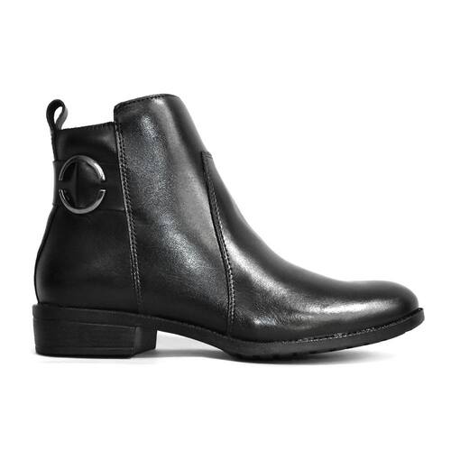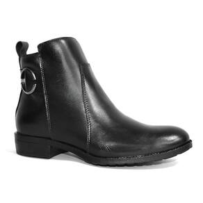 Bota Godiva Salto Baixo Couro Feminina Preta 338440As botas de cano curto são as mais versáteis entre os modelos das estações mais frias, perfeita para ser utilizada em diversas combinações de looks, em qualquer estação do ano. Fabricada em couro, possui pequeno detalhe metálico em seu cabedal, com forro e palmilha revestidos em material têxtil e solado confeccionado em borracha, contendo um pequeno e delicado salto bloco.