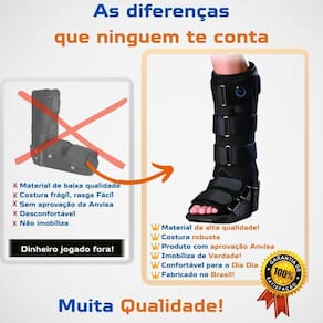 Benefícios: - Indicado para fraturas estáveis, na ausência de deformidades graves. - Luxações, entorses e lesões crônicas do tornozelo. - Prevenção e tratamento das deformidades geradas pela artrite reumatóide. - Produto possui barbatanas metálicas resistentes e leves que fornecem imobilização e possui solado antiderrapante em formato confortável. - Bilateral Qual tamanho comprar Utilize seu tamanho de calçado como referência para determinar o tamanho do produto: M - calçado 37 a 40 Composição: 40% poliamida, 30% algodão, 20% metal e 10% vinilal. Forma de uso / Colocação: Siga as etapas abaixo e utilize a imagem ao lado como referência. 01 Abra o produto soltando os fechos de contato. 02 Posicione o pé de forma anatômica na bota e fixe as partes de tecido aveludado, localizadas no peito do pé, uma na outra repare que uma das partes de tecido possui pequena parte de fecho de contato em sua parte inferior para essa fixação . 03 Fixe os fechos de contato localizadas no peito do pé transpassando as mesmas pelos passantes metálicos. 04 Realize o mesmo procedimento para as partes de tecido aveludado e os três fechos de contato localizadas na perna. 05 Verifique se os ajustes feitos deixaram o tornozelo imobilizado e a bota de forma justa à região. ANVISA: AF Nº 8.04.537-8 Responsável Técnica: Dra. Vanessa Dantas Aguiar CREFITO-3 Nº 39345 F CREFITO: RE Nº 5435-SP do vendedor: 7 dias Marca: Não Informado
