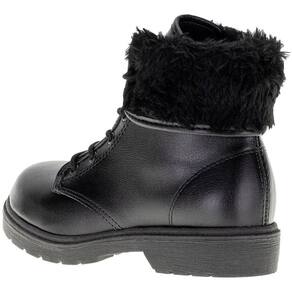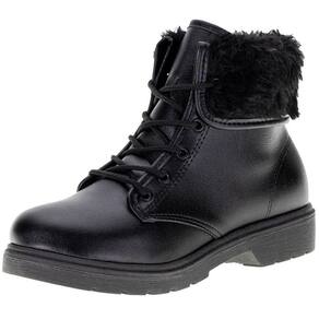A Bota Infantil Coturno Molekinha é confeccionada em Napa Turim com acabamento em costura, aplicação de pelo premium, fechamento por cadarço de amarração, forro interno em têxtil, palmilha em PU e solado em borracha. O cano mede doze centímetros de altura por trinta centímetros de circunferência.