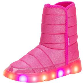 A Bota Infantil Feminina Led Novopé é confeccionada em material têxtil com aplicação de glitter, acabamento em costura, forro interno em têxtil, palmilha em PU e solado em borracha antiderrapante com luz de led que acende a cada passo.